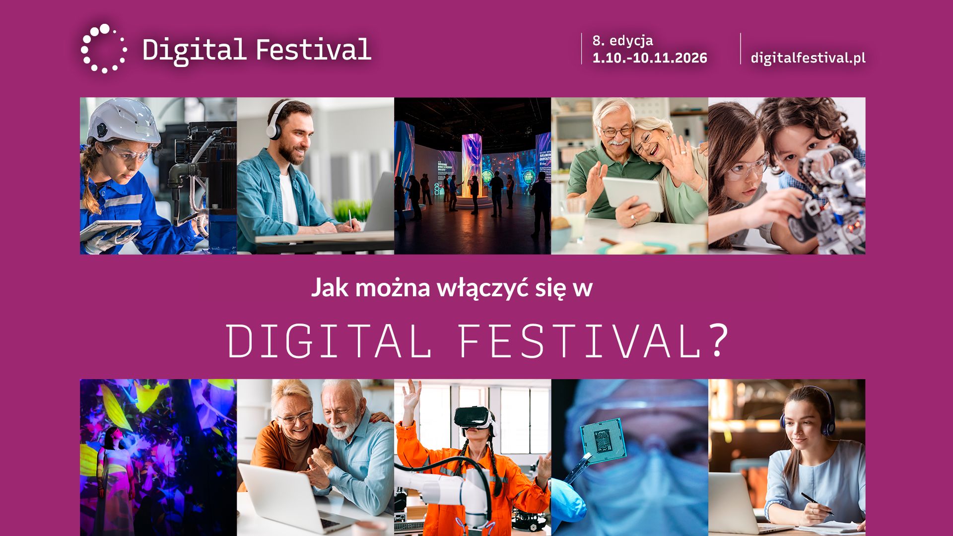Digital Festival to kilkadziesiąt inspirujących i intrygujących spotkań z technologiami oraz liderami cyfrowych zmian. To wiele wydarzeń edukacyjnych i rozrywkowych, ale także merytoryczna debata z ekspertami oraz decydentami. Debata, w której centrum jest człowiek i jego potrzeby. Wszystko po to, żeby zwiększyć technologiczną świadomość naszego społeczeństwa, podwyższyć jakość życia i zwiększyć naszą produktywność. Jesteś organizatorem wydarzenia związanego z cyfryzacją lub nowymi technologiami i organizujesz je w okresie trwania festiwalu. Koniecznie dodaj swoje wydarzenie do naszego festiwalowego kalendarza, uzupełniając formularz.